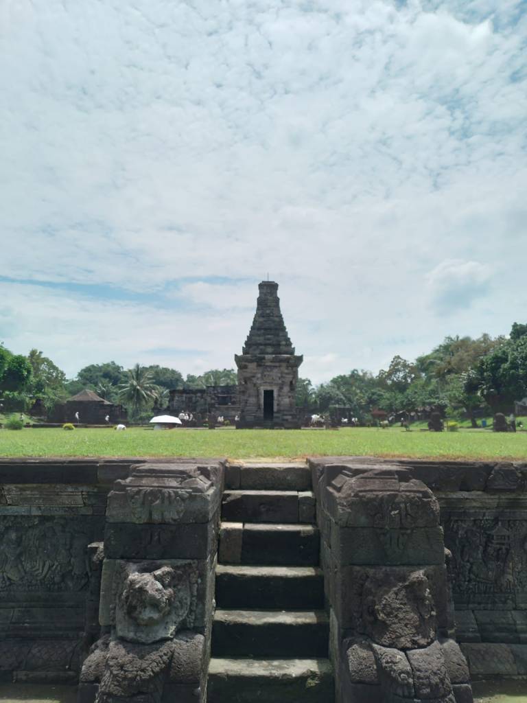 Candi induk terdiri dari tiga teras tersusun dengan tinggi 7,19 meter. Pada masing-masing sisi tangga terdapat dua arca Mahakala yang berangka tahun 1269 Saka atau 1347 M.Pada dinding di teras pertama dan kedua berjajar panil pahatan cerita Ramayana dan dan Krisnayana diselingi dengan hiasan motif medalion.